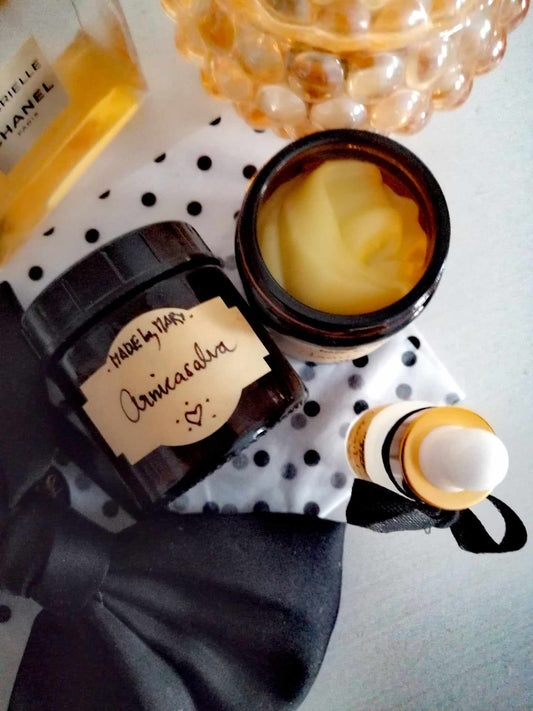 Arnican lindrar vid blĂ„mĂ€rken, bett och bulor. Ăven den ger samtidigt huden fukt, smidighet och nĂ€ring!
