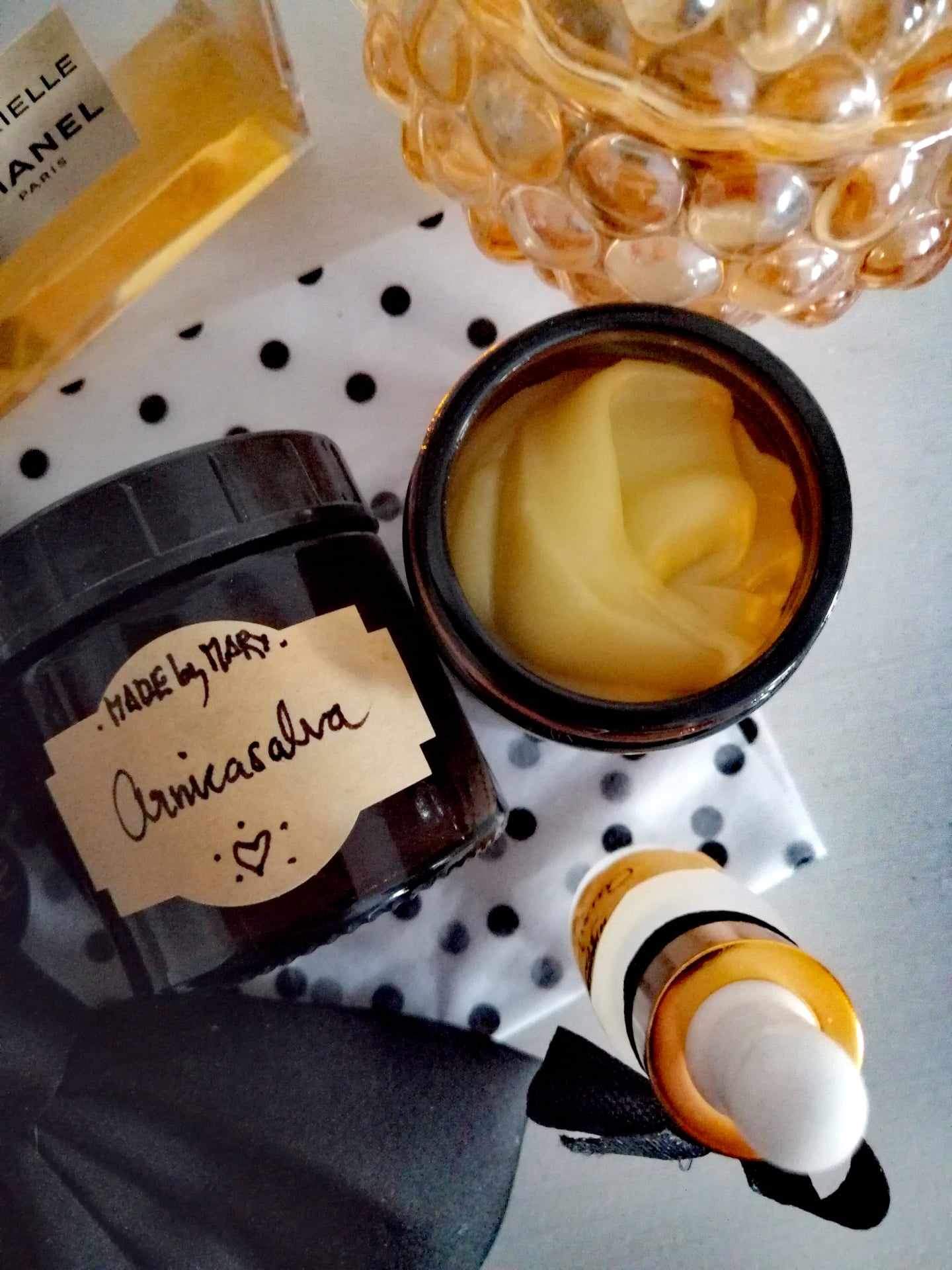 Här får du Arnicans läkande och lindrande egenskaper och samtidigt mjukgörande och vårdande effekt i en härlig salva tillverkad av närande kallpressade oljor, skyddande bivax och eteriska oljor av bl a lavendel.